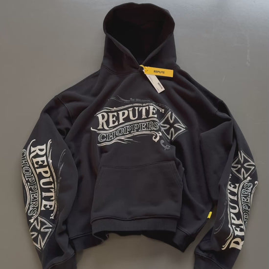 The RPT “Choppers” Hoodie pays homage to that early 2000s West C` Choppers era when hand built bikes, oil stained denim, and oversized sweats defined California’s rawest energy.